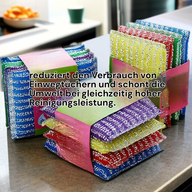 ● Hochwertiges, antihaftbeschichtetes Material sorgt für mühelose Reinigung und entfernt effektiv Fett und Schmutz von Geschirr und Oberflächen. ● Vielseitig einsetzbar als Spültuch, Reinigungstuch oder Wischhilfe – ideal für Küche, Bad und andere Haushaltsbereiche. ● Langlebig und wiederverwendbar, reduziert den Verbrauch von Einwegtüchern und schont die Umwelt bei gleichzeitig hoher Reinigungsleistung. ● Sanft zu empfindlichen Oberflächen, hinterlässt keine Kratzer und eignet sich optimal für Gläser, Geschirr und beschichtete Pfannen. ● Schnelltrocknend und antibakteriell, verhindert die Bildung von unangenehmen Gerüchen und sorgt für hygienische Sauberkeit im Haushalt.